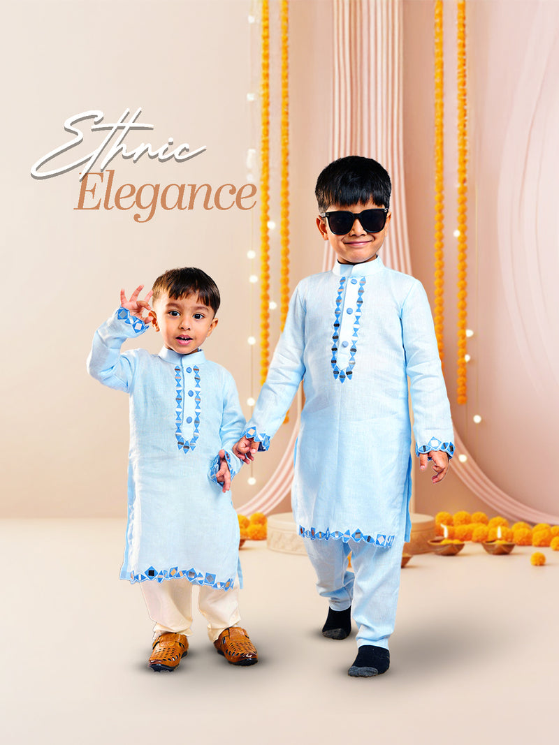 Discover our latest arrivals in ethnic and traditional wear. Perfect outfits to make your little ones shine this festive season. From embroidered lehengas and frocks to kurta-dhoti sets and sherwanis, find the perfect ensemble for every festive occasion. Let your little stars shine in festive elegance!