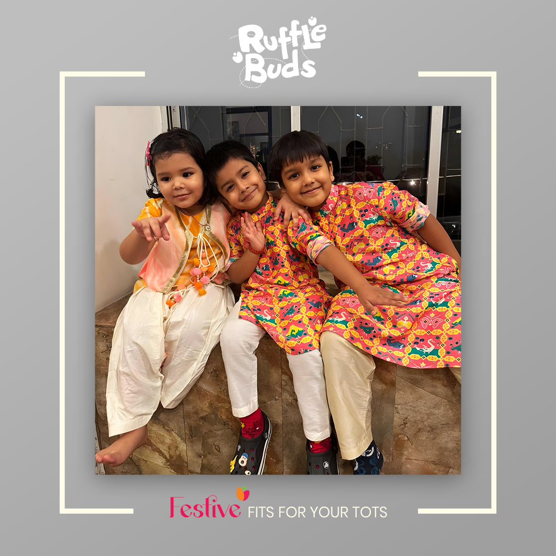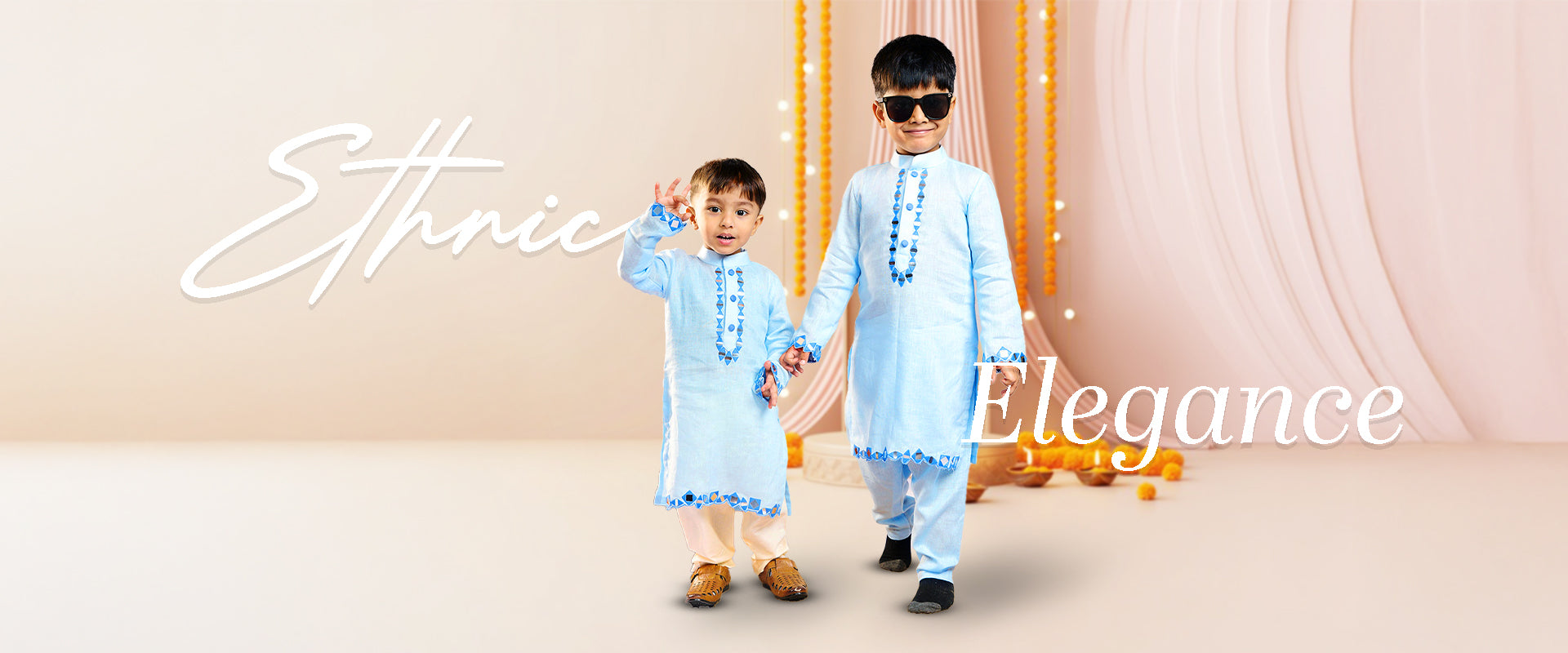 Discover our latest arrivals in ethnic and traditional wear. Perfect outfits to make your little ones shine this festive season. From embroidered lehengas and frocks to kurta-dhoti sets and sherwanis, find the perfect ensemble for every festive occasion. Let your little stars shine in festive elegance!