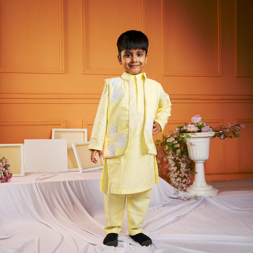Yellow Dinosaur Embroidery Kurta Pant Set