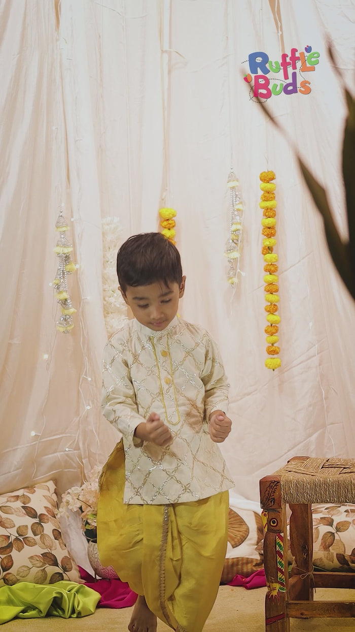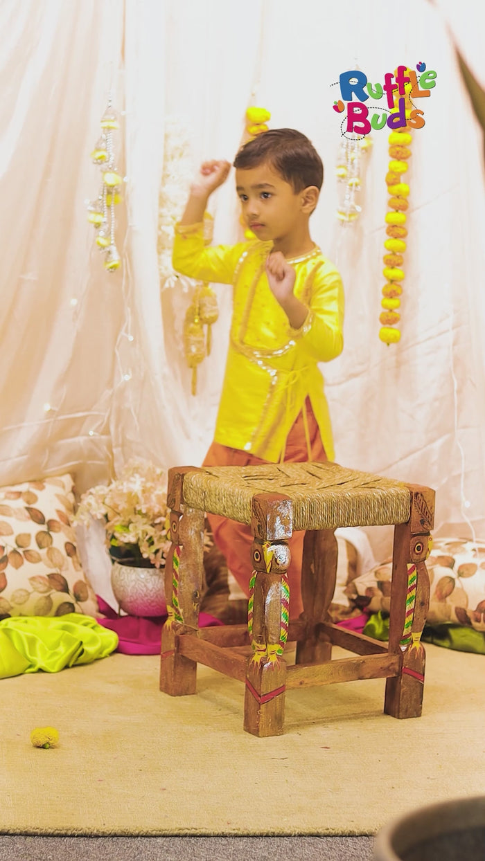 Yellow Angarkha Style Kurta with Orange Dhoti