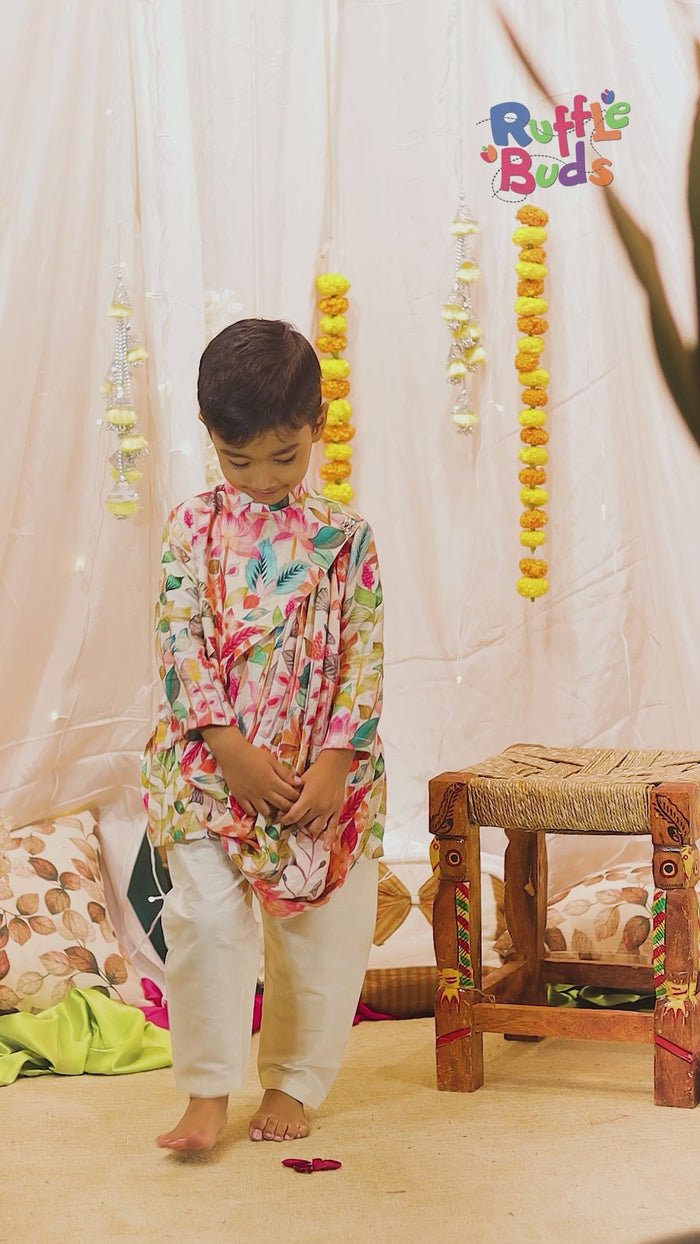 White Printed Cowl Style Kurta Set